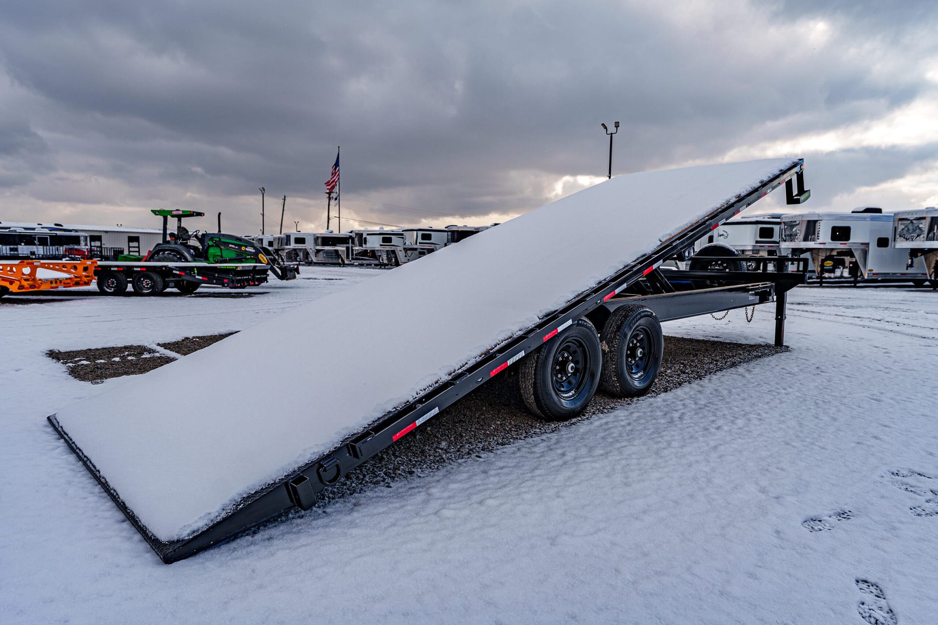 Full tilt deck for easy, drive-on loading