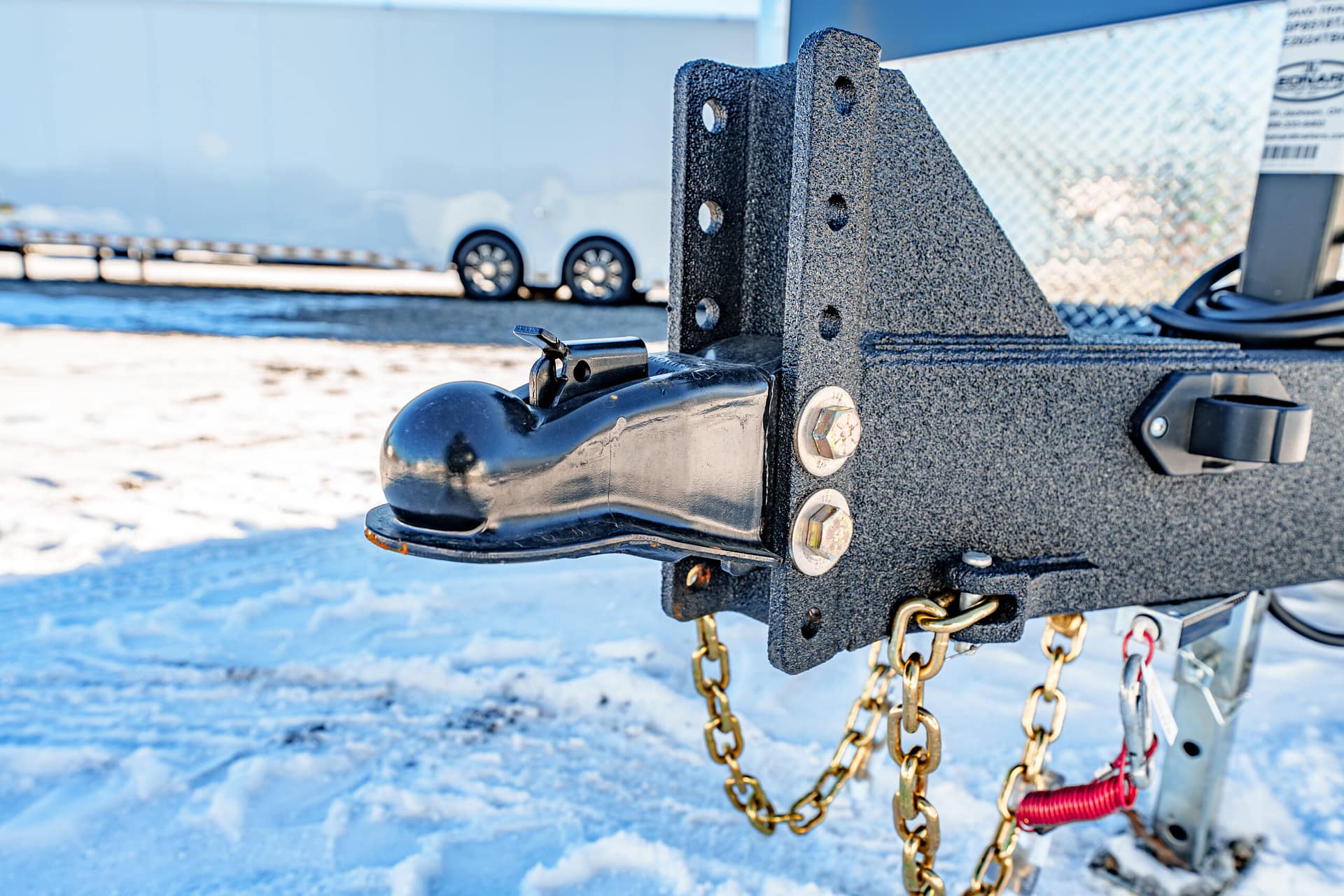 5,000 lb drop-leg jack, rockguarded tongue and wheel boxes