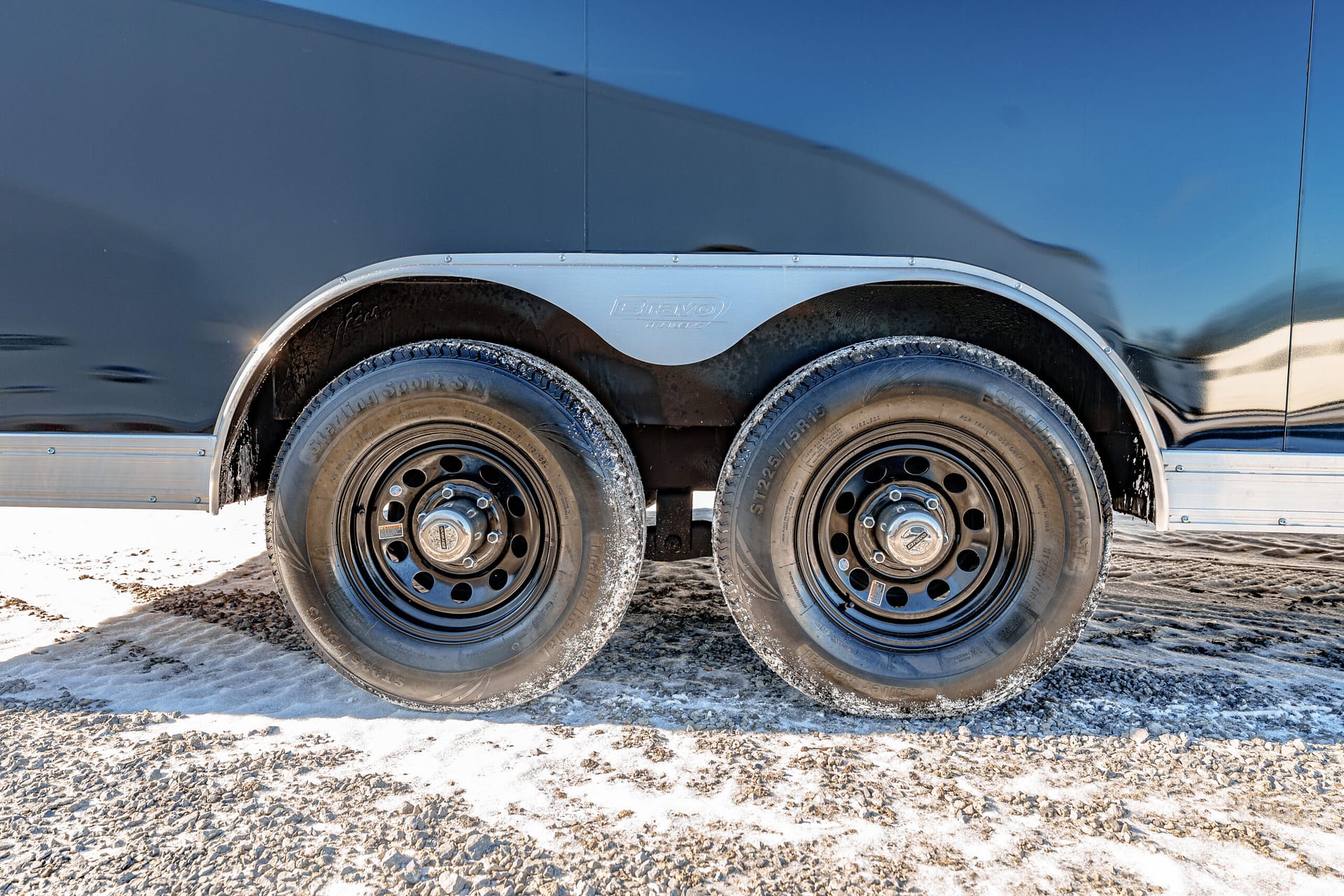 ST225/75R15 LRD radial tires on 15″ black mod wheels