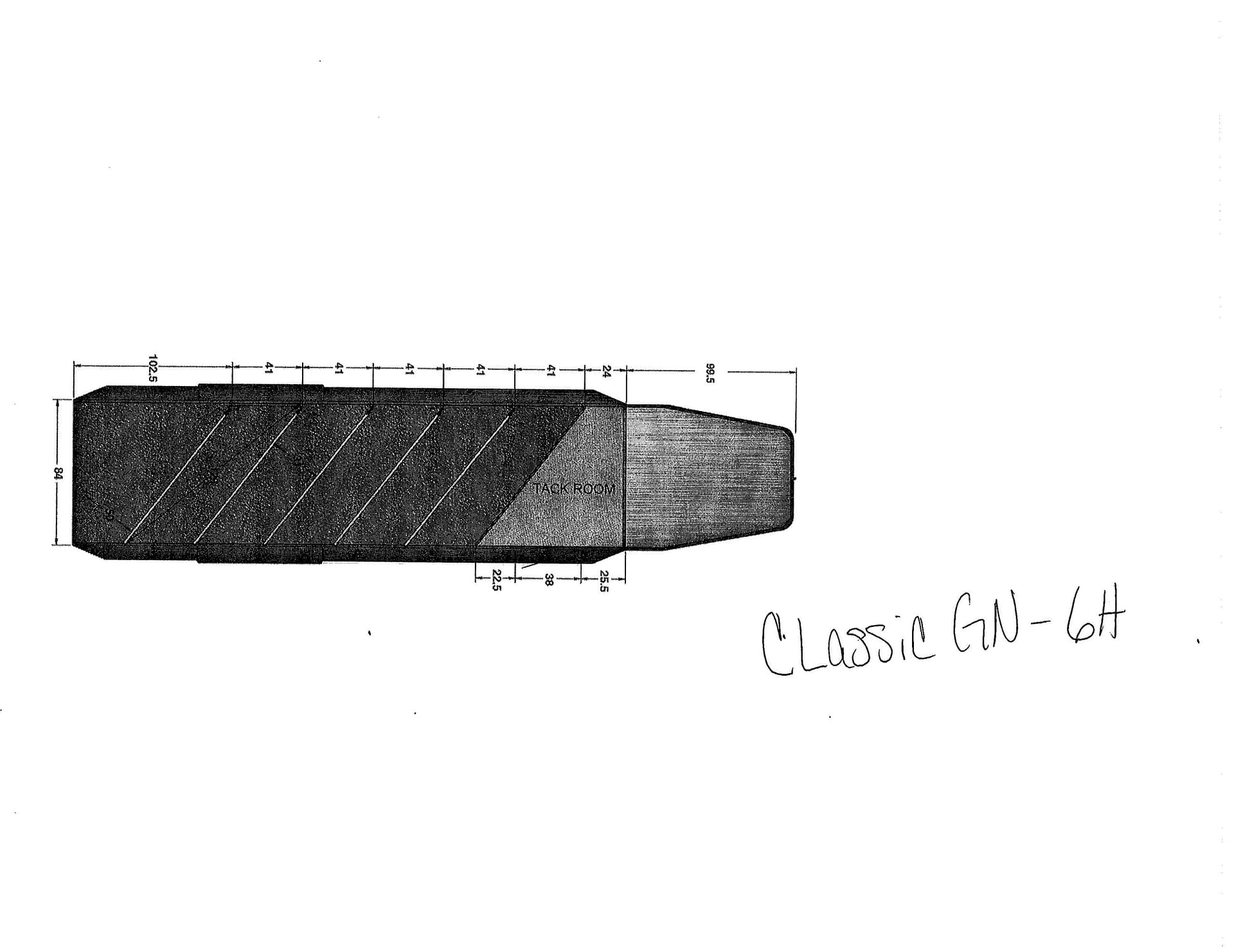 Our Classic model is constructed with a steel frame and aluminum skins. It’s 7’0″ wide, and 7’0″ tall and comes standard with custom drop-down feed doors with face grills on the head side, sliding windows on the tail side, and a roof vent in each stall. The large 41″ stalls provide plenty of room and comfort for your horse and feature the industry’s best slam latch divider system. The tack room is roomy and functional and features our state-of-the-art swing-out saddle and blanket racks.