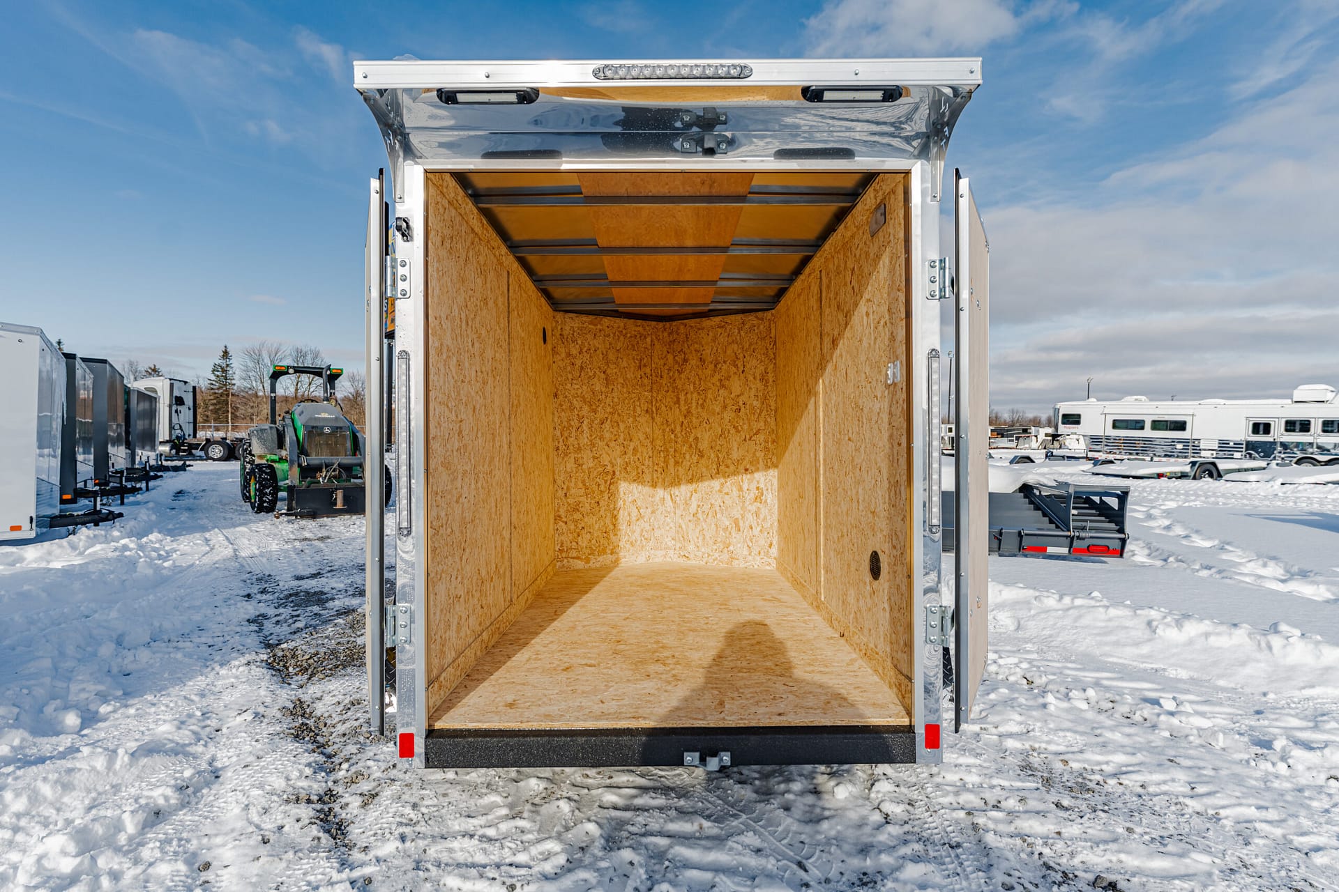 Rear swing doors (5′ wide) w/ plastic holdback