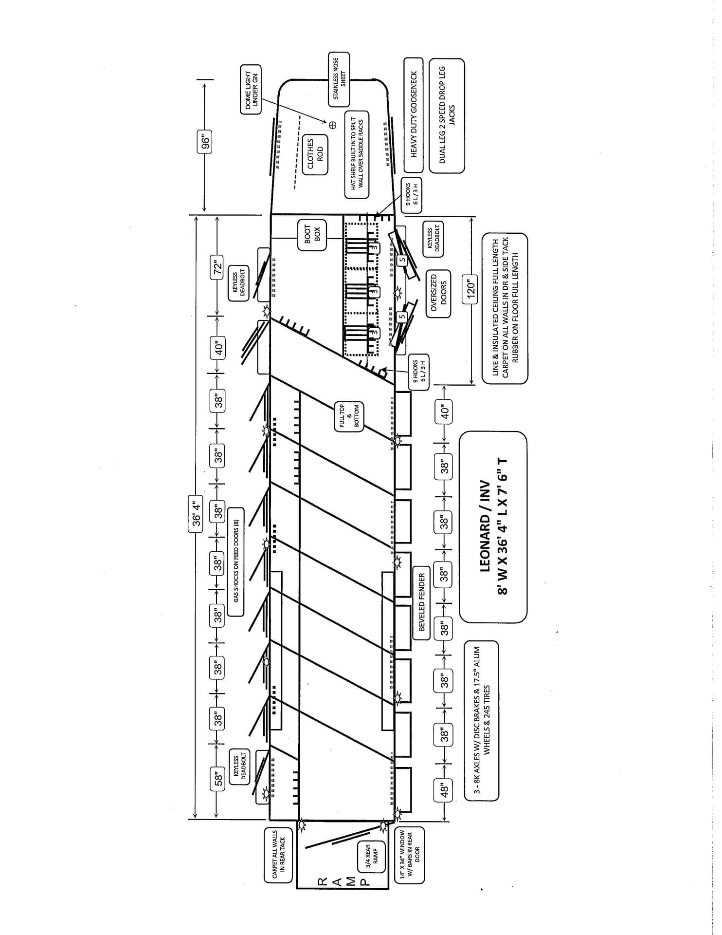 Overall Size: 8′ W × 36’4″ L × 7’6″ T