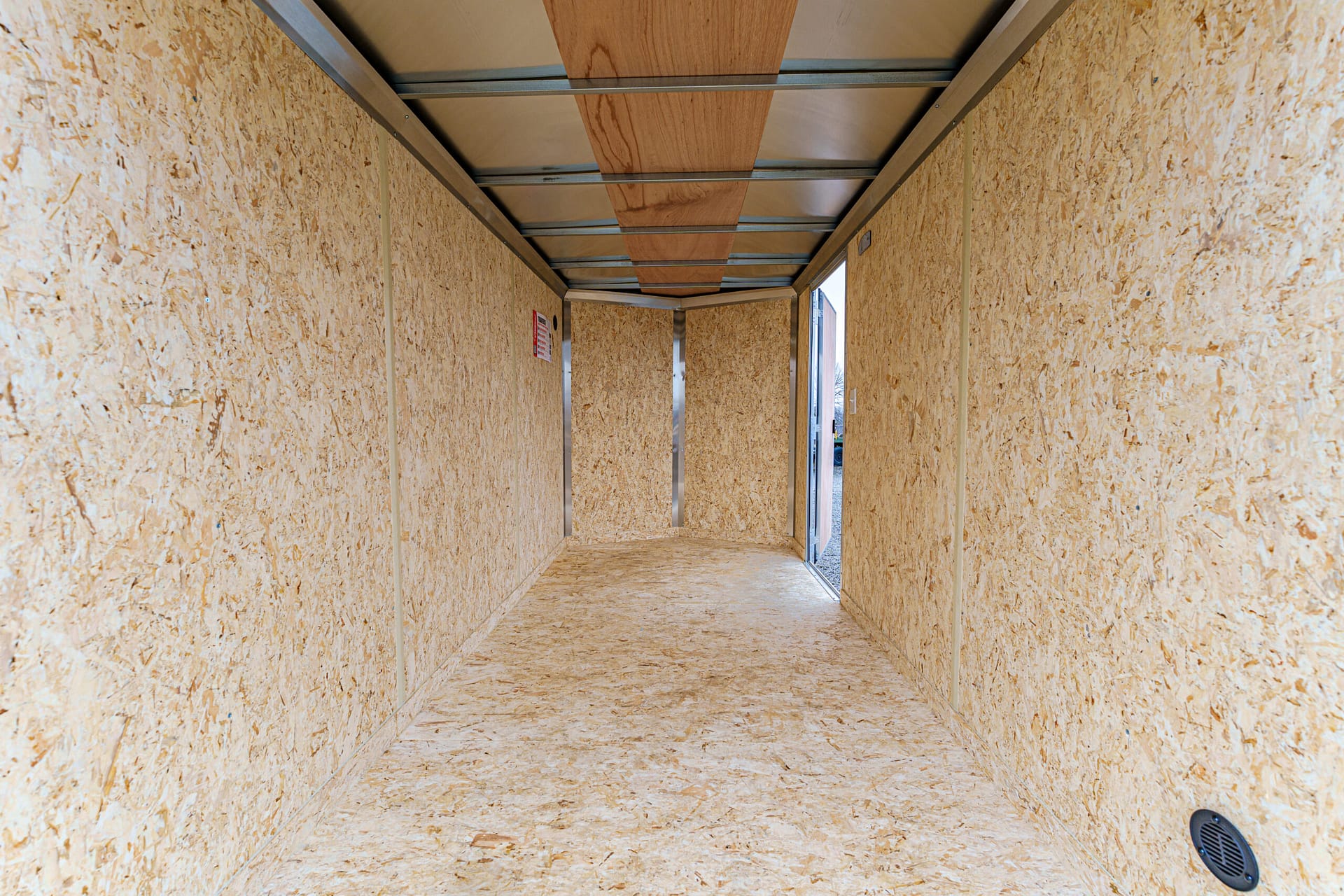 Engineered wood walls with lauan ceiling