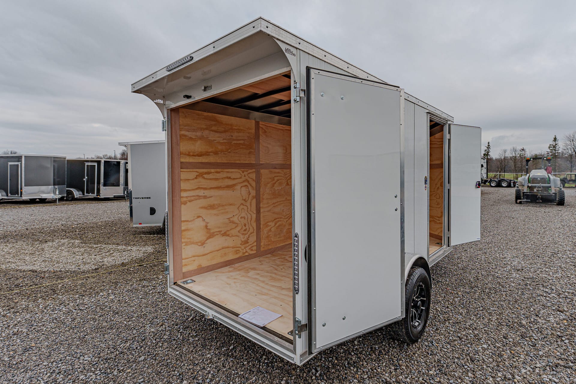 Compact and durable 6’ x 12’ enclosed cargo trailer built for hauling equipment, ATVs, or general cargo. Designed with a strong tube frame, torsion axle, and aluminum exterior for dependable everyday use.