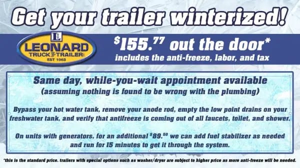 Trailer drop offs must be scheduled with the Service Dept in advance. Because many other dealerships do not service the trailers they sell, we are extremely busy this time of year and are currently booked several weeks out.